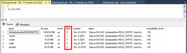 If you don’t know Database ID, then there is another better way of checking is with Database Name.