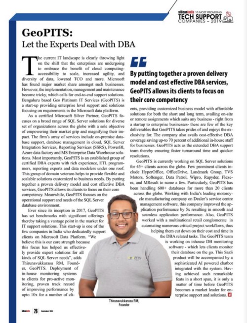 GeoPITS featured in the 10 most promising tech support companies of India (Source: SiliconIndia)