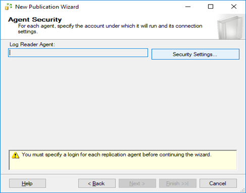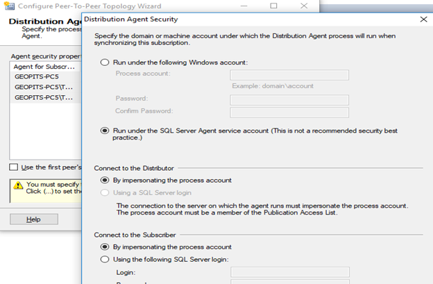 27) In this example, I use run under the SQL server agent service account and for publisher by impersonating the process account option but for best practice create a login account and use that account for the security.