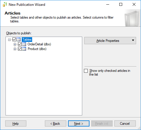 17) Select the publisher for the database and click next.