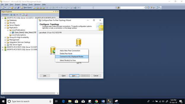 The peer to peer replication is configured completely is up and running successfully.