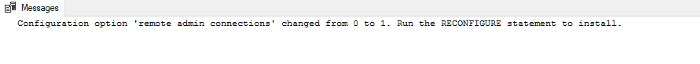 sp_configure ‘remote admin connections’, 1