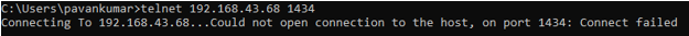 Then by using the telnet, check server ports are opened but we got the below mentioned error.