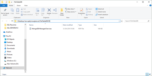 Now we are going to create a sample table in our database to upload all PDFs. But this time we are not going to create regular tables. Instead this type of table is called file table. Using file table, any documents or PDF or for that matter any file can be stored in the SQL Server. The created file tables can be found under the âFileTablesâ section under âTablesâ in the left pane.